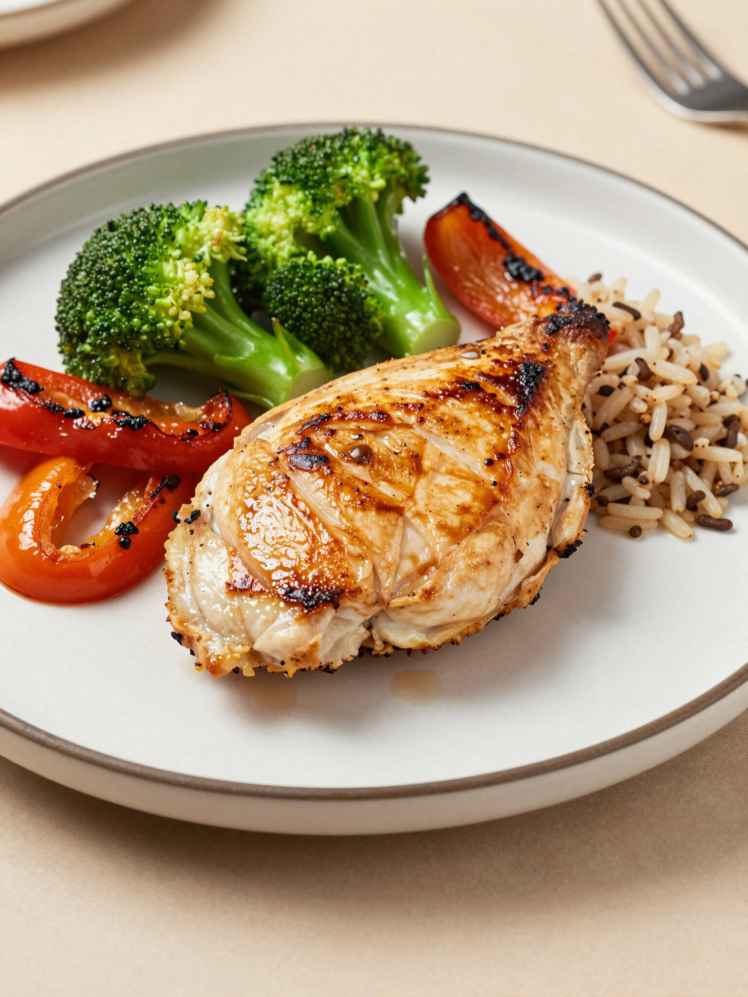 Tender chicken breast with garlic-sautéed spinach and brown rice.